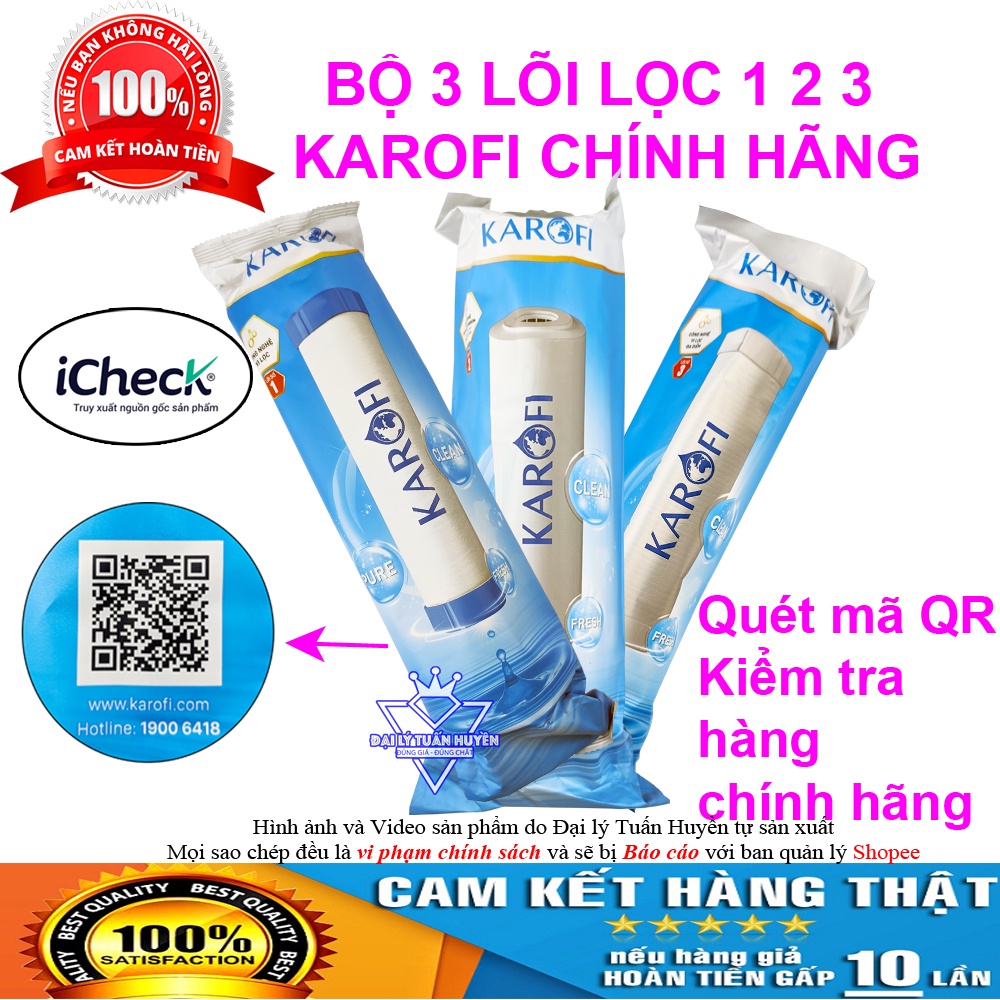 Bộ 3 Lõi lọc nước karofi 1,2,3 chính hãng, dùng cho máy lọc nước RO free ship